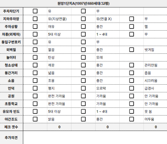 여력이 된다면 체크만 하지 않고 단지 임장하면서 관찰한 내용을 같이 적으면 더욱 좋겠죠.