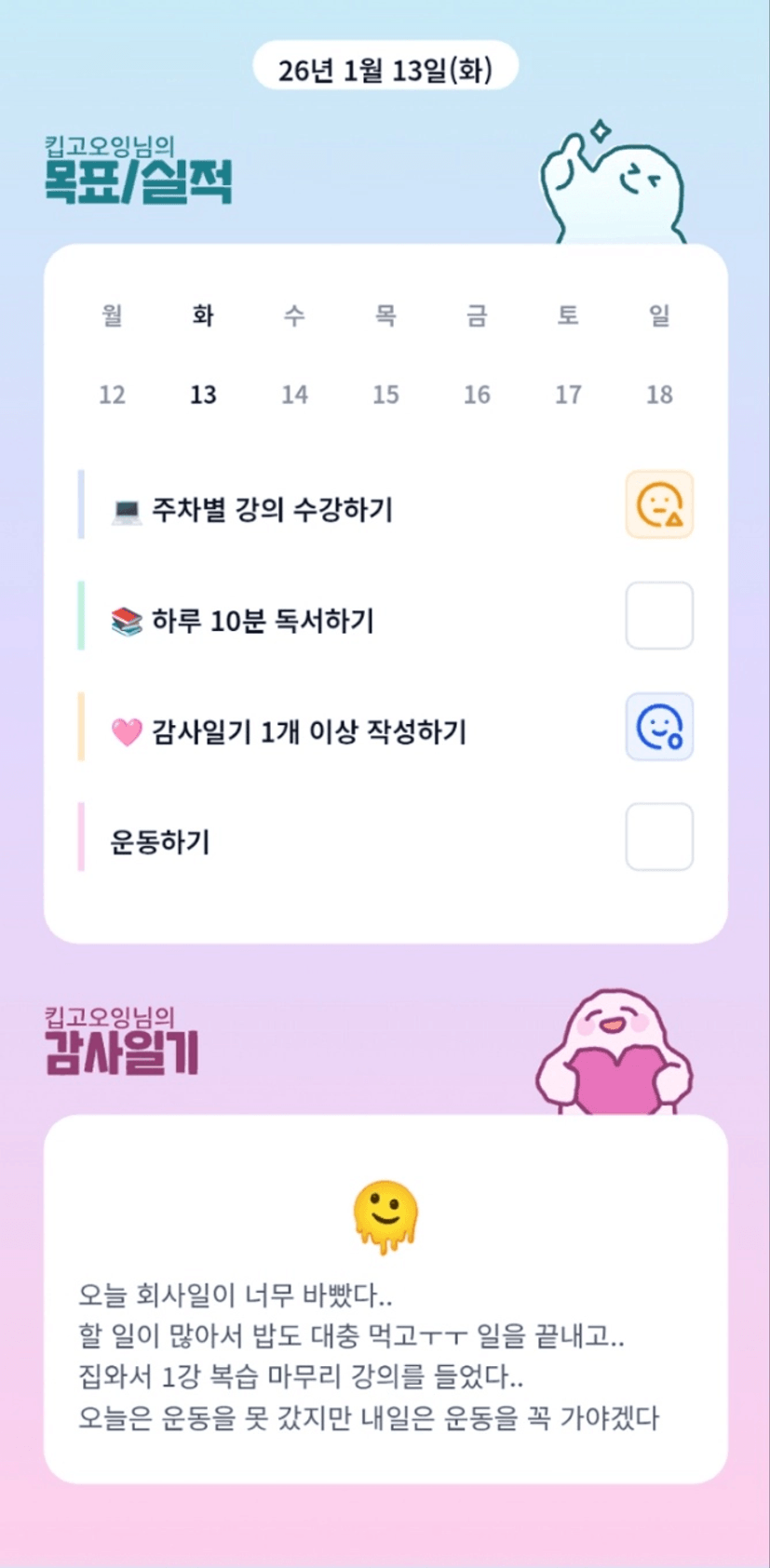 2️⃣ 1주차 목실감 작성하며 어땠는지 소감도 써보기 ✍🏻