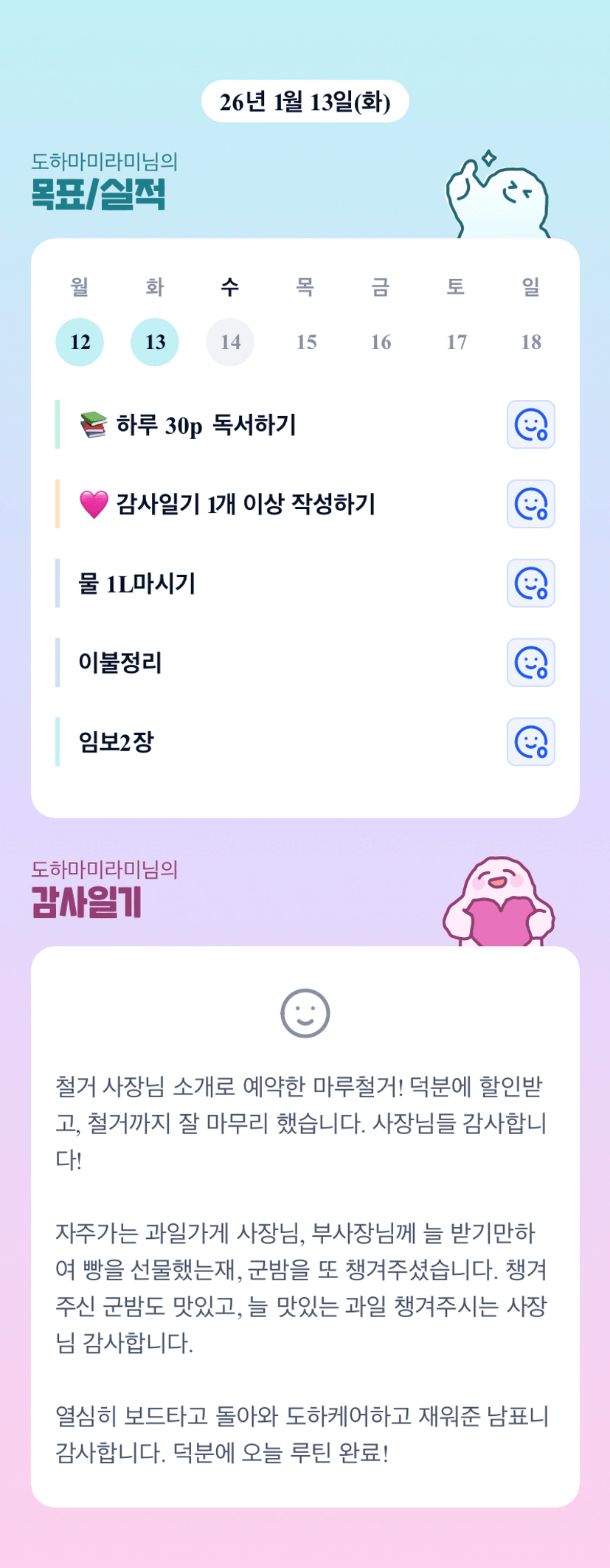 각자의 자리에서 열심인 부부시네요~ 루틴의 여왕으로 거듭나고 계신 라미님 화이팅!!