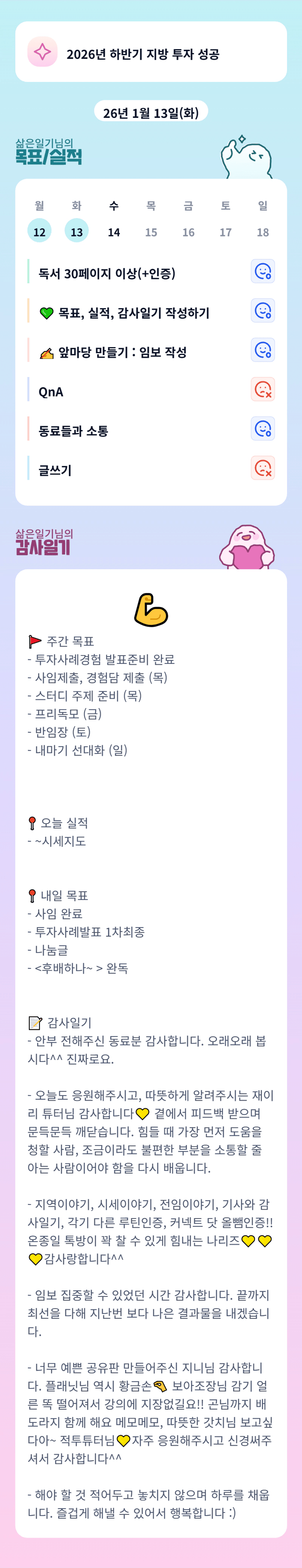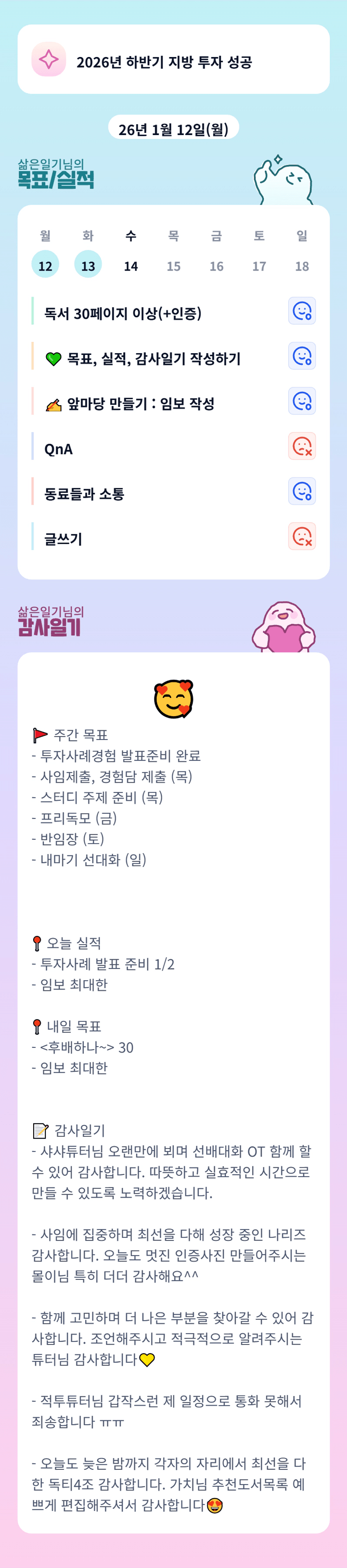 일기님 고생많으셨습니당!ㅎㅎㅎ오늘도 화이팅하세용!!