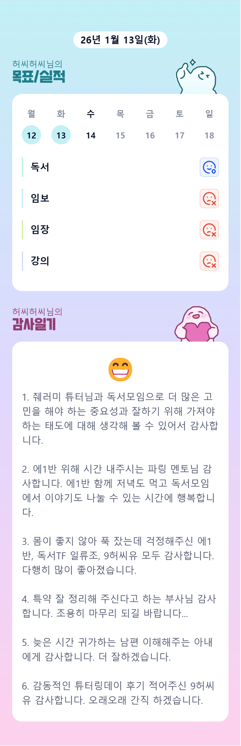 [에이스1반/독서TF 허씨허씨] 1.13 감사일기