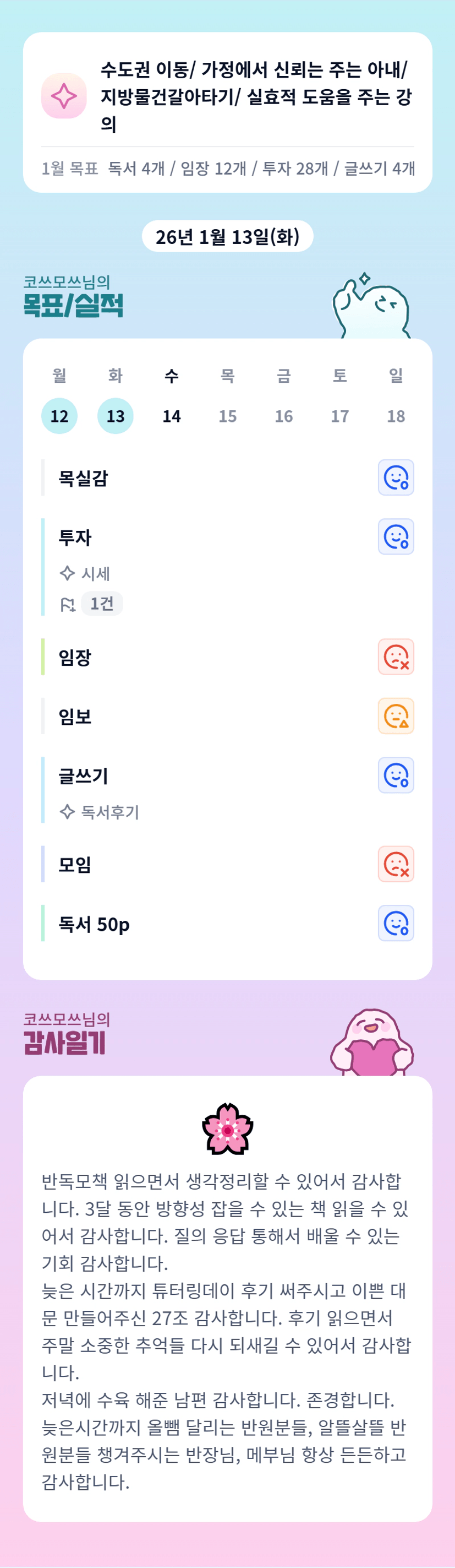 어제도 하루 알차게 보내신 코부님 ㅎㅎ 너무 고생하셨습니다아! 오늘도 화이팅해보아용