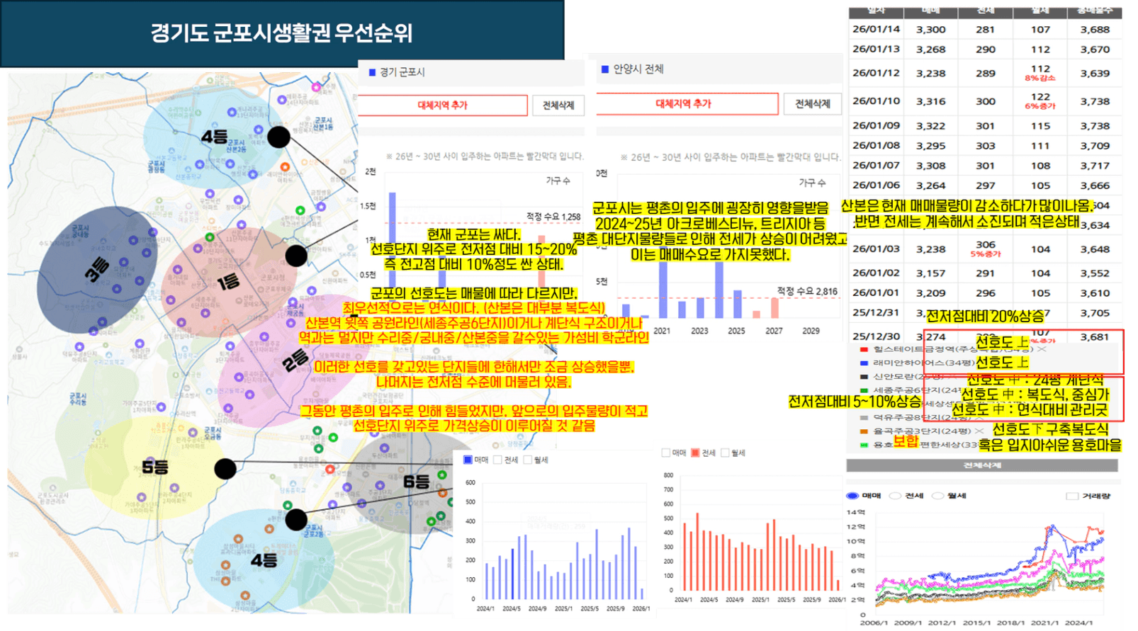 군포시 시세스캐닝 이후 생활권별 선호도 및 생각정리.