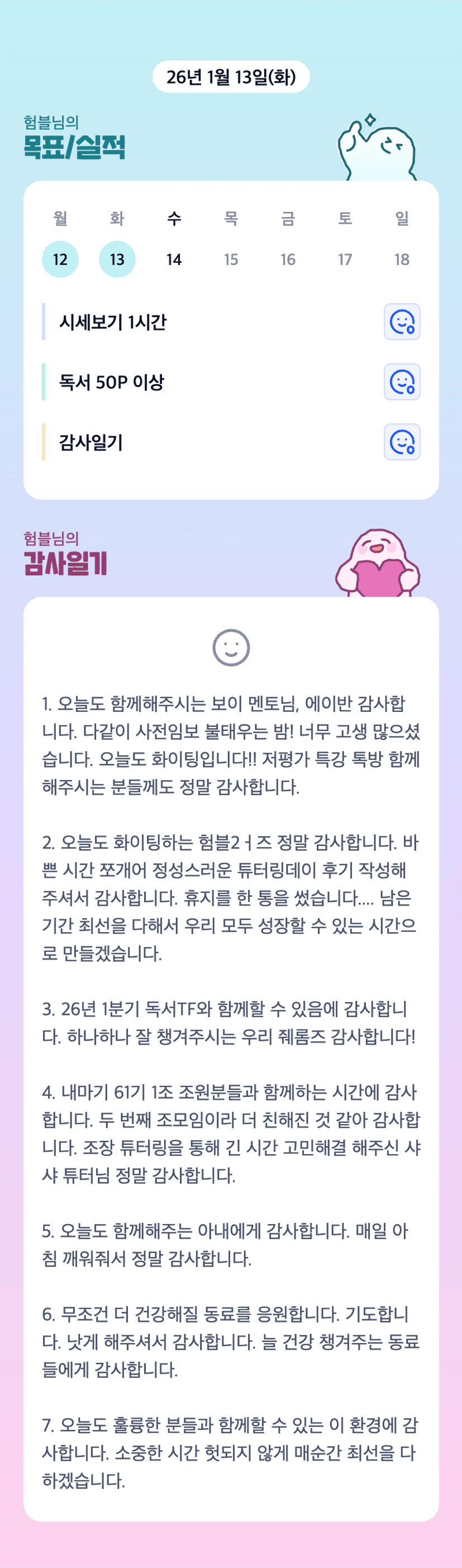 쌤~행복하셔요. 한결같으심에 감사합니다.