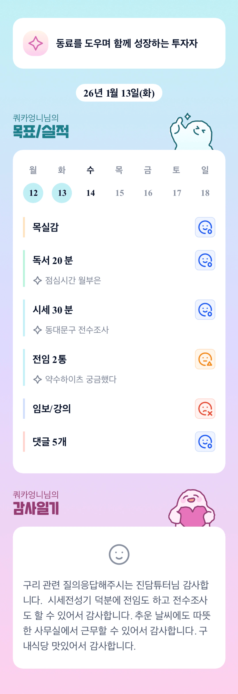 하루하루 실행하는 쿼카님 본받겠습니다