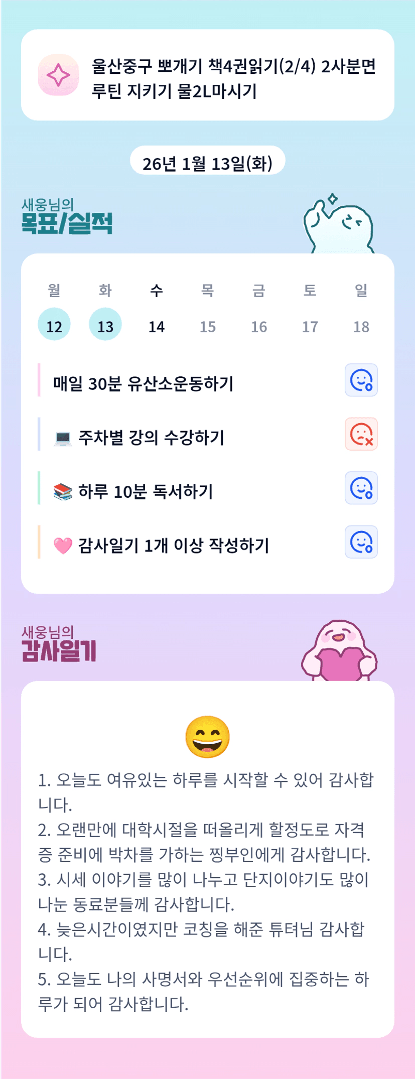 크~~ 웅님!! 사명서와 우선순위 집중~~~~~ 넘넘 멋집니다 화이팅입니다!!!!