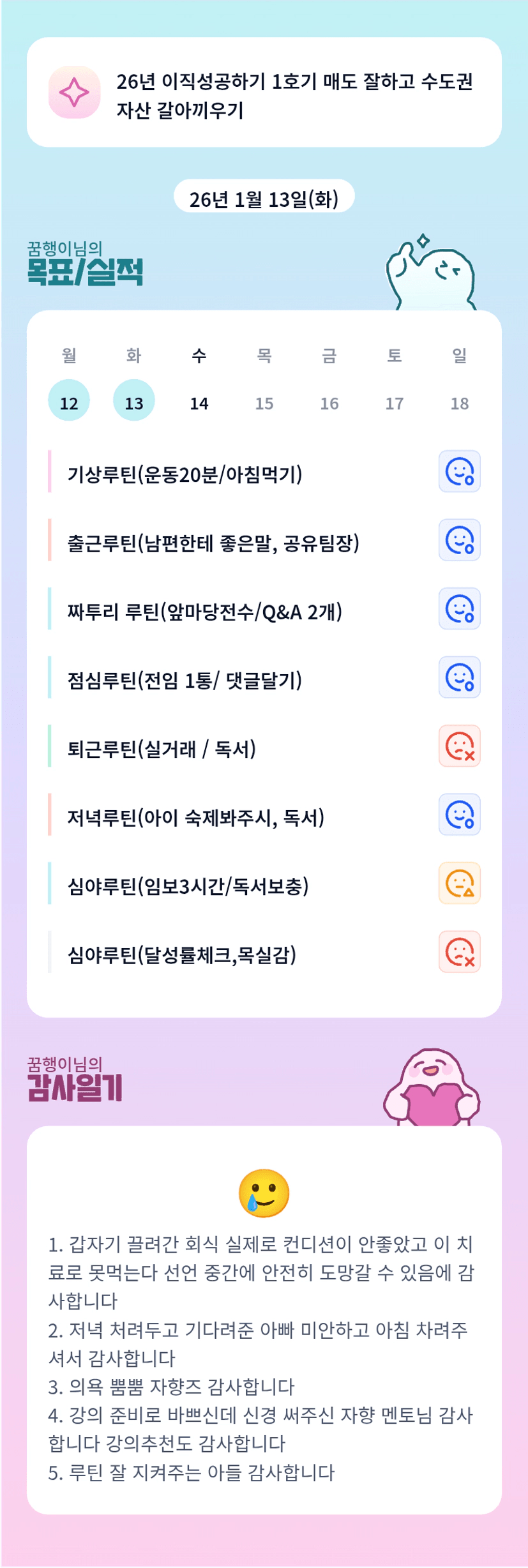 아들까지 루틴왕인가요ㅎㅎㅎㅎ엄마닮아 똑부러지겠고만!! 꿈행님 컨디션 회복하세유ㅠㅠ💜