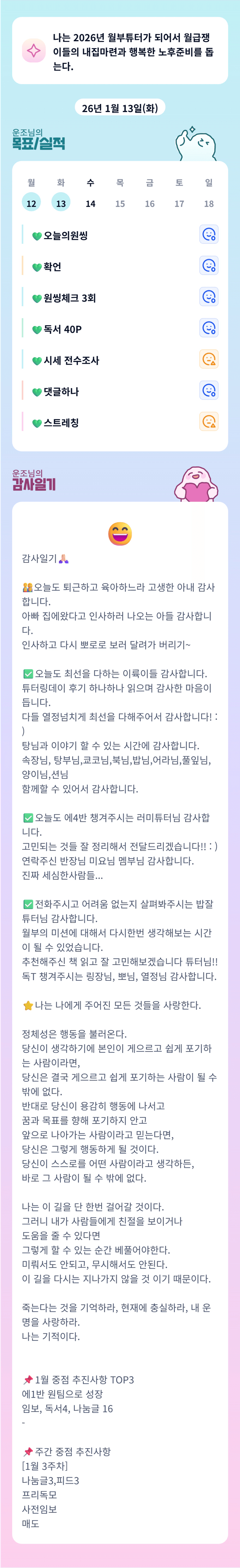 힘들어하는 동료들을 돕고, 때로는 함께 웃고 또 함께 울면서 해나가려고 합니다.