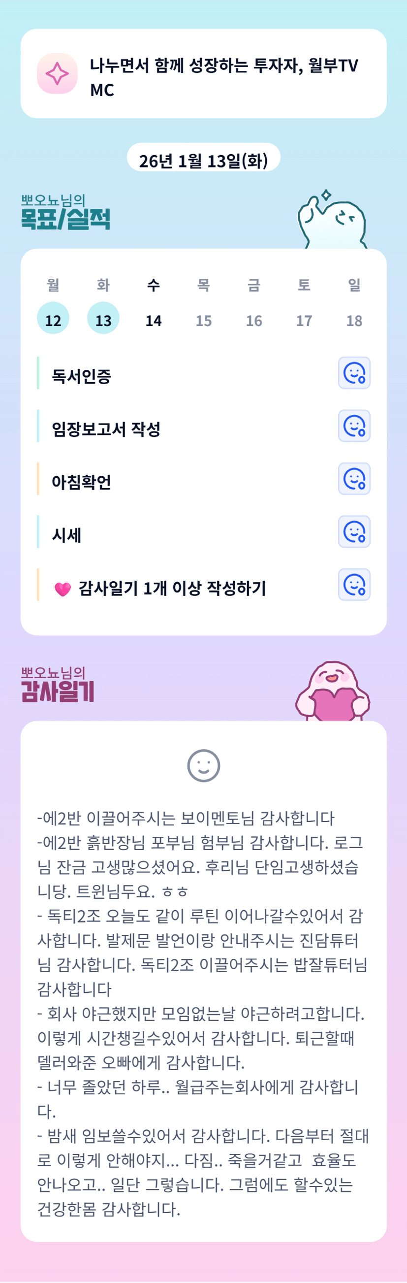 야간 : 투자스터디, 글쓰기1개