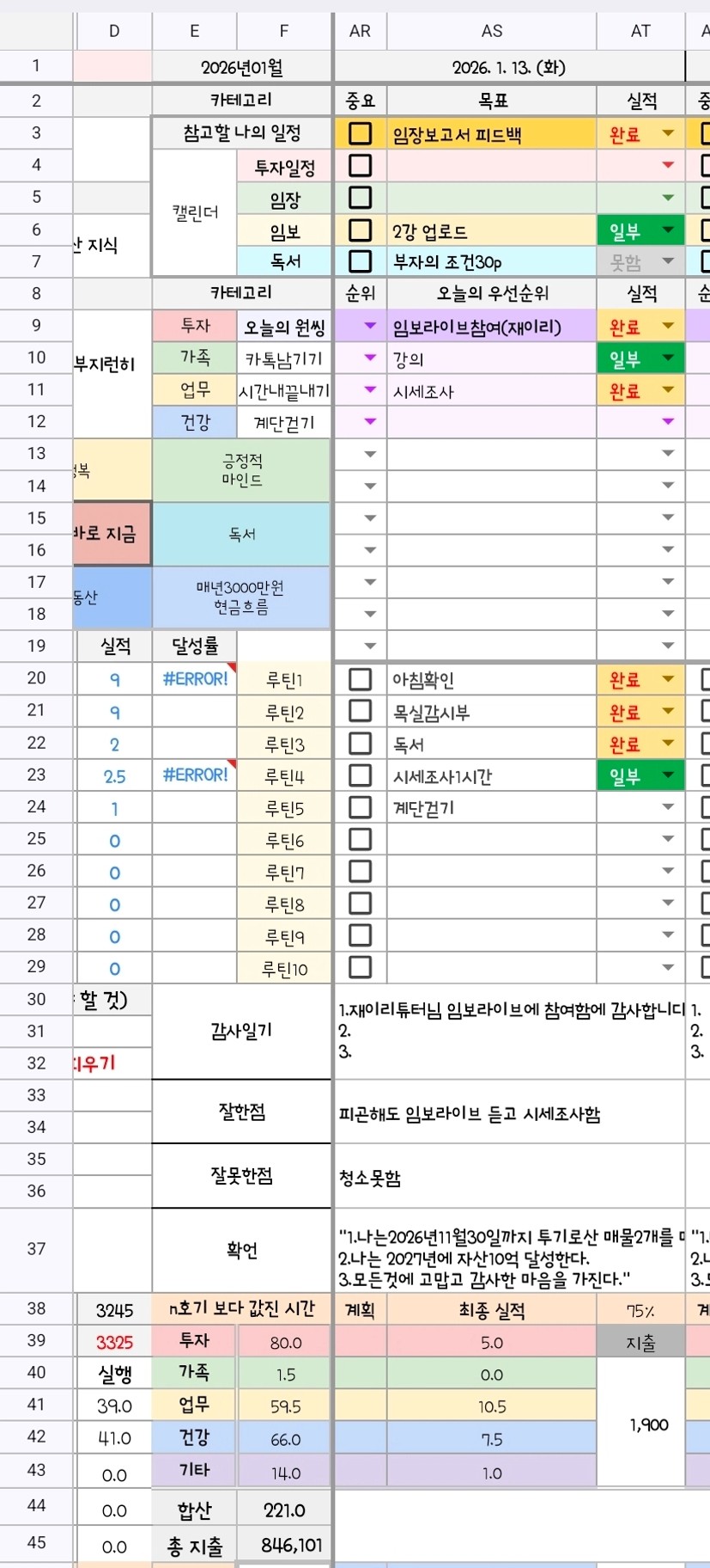 예) 토요일부터 목요일까지 목실감을 쭉 하루하루 적어보면서 스스로 중요한 부분은 놓치지 않고 해낸 것 같아 뿌듯하다.