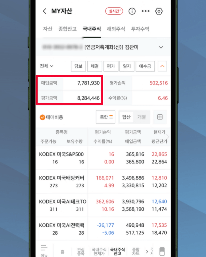 현재 원금은 약 778만 원, 수익률은 6.46%