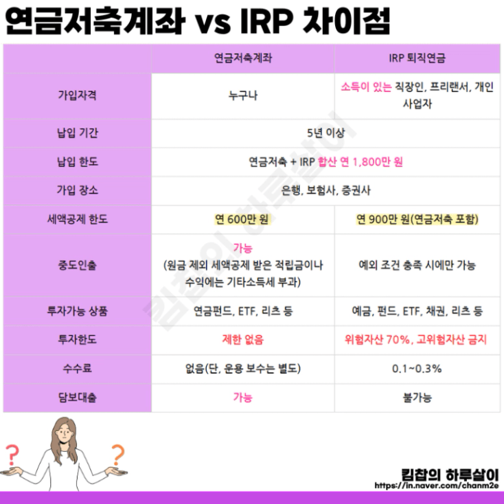 연금저축계좌 vs 퇴직연금 IRP 계좌