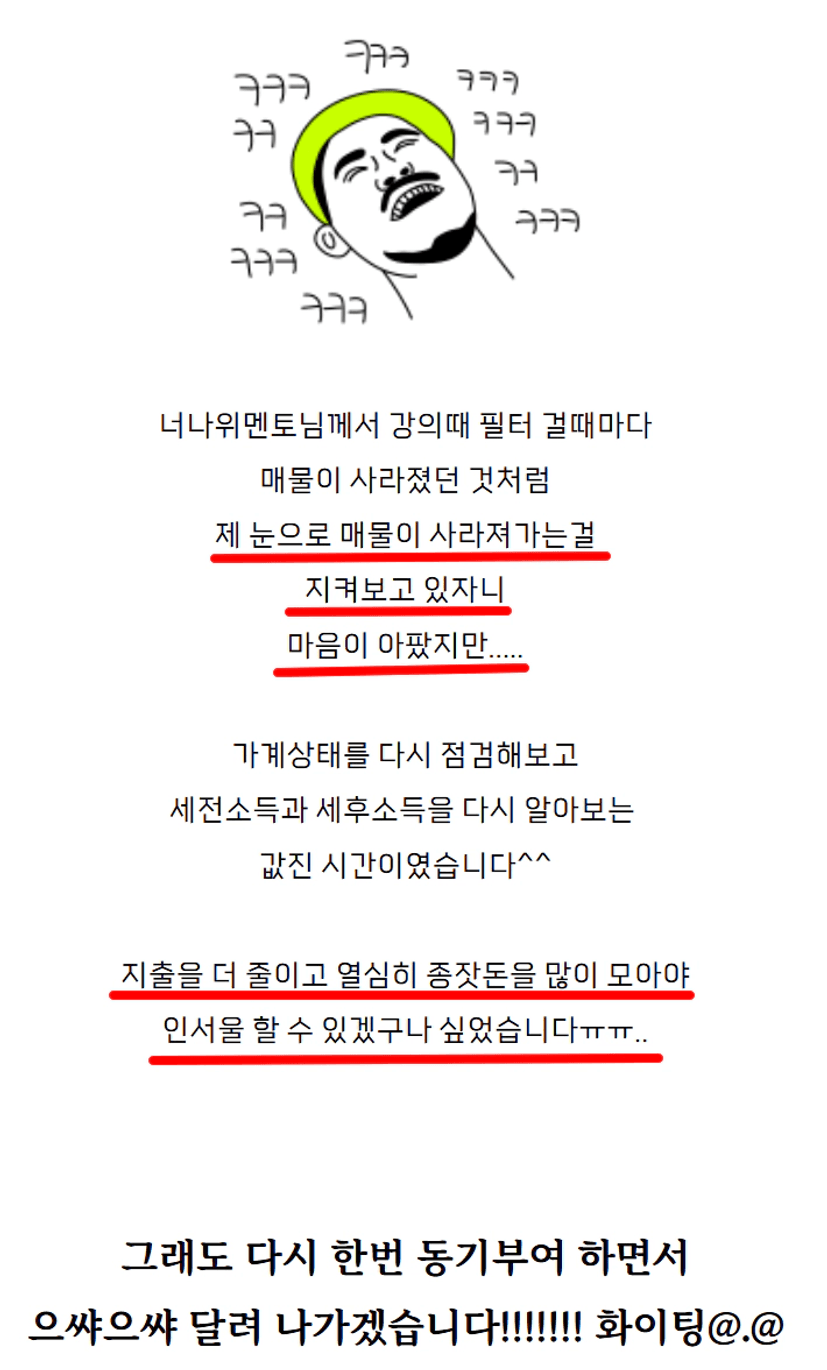 '임대료 올려주는데에만 쓰고 있었겠구나' 라는 생각이 들었습니다.