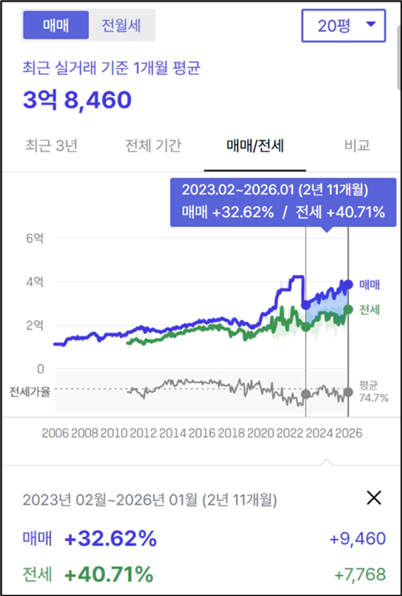 더 중요한건 전세가가 8천이나 올랐다는 사실입니다.