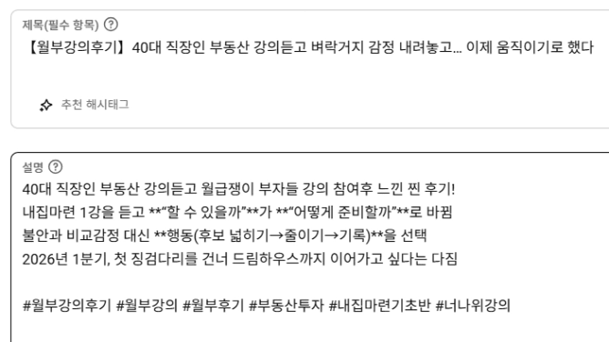 유튜브 1)영상 제목, 2) 설명(더보기), 3) 설명 내 해시태그 에