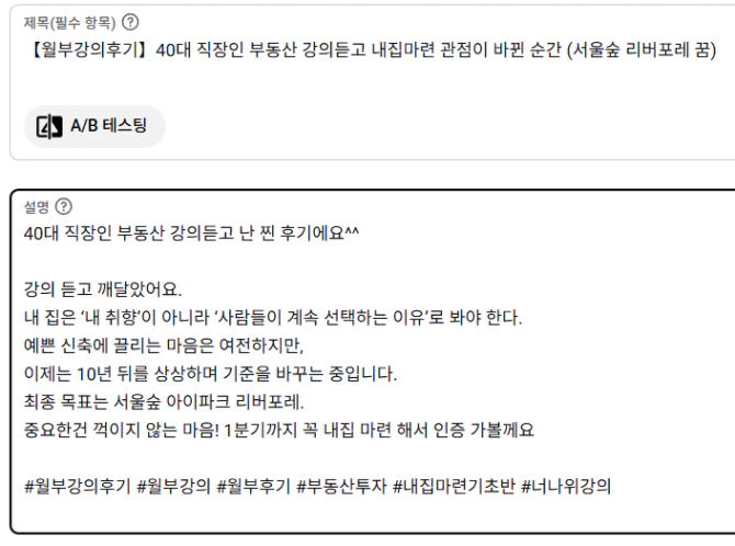유튜브 1)영상 제목, 2) 설명(더보기), 3) 설명 내 해시태그