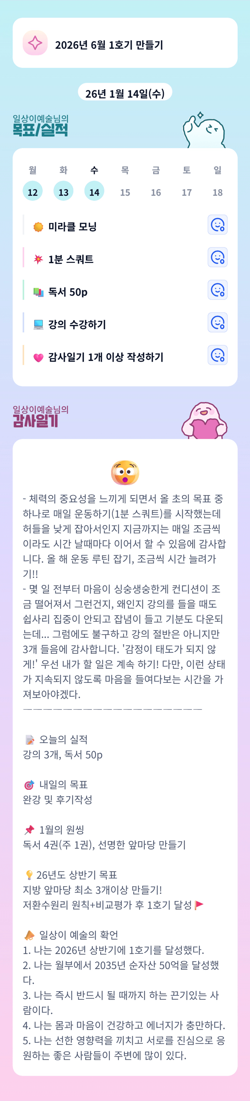 예술님 같이 화이팅이에요! 우리 조급하지 않게 천천히 해보아요🥹