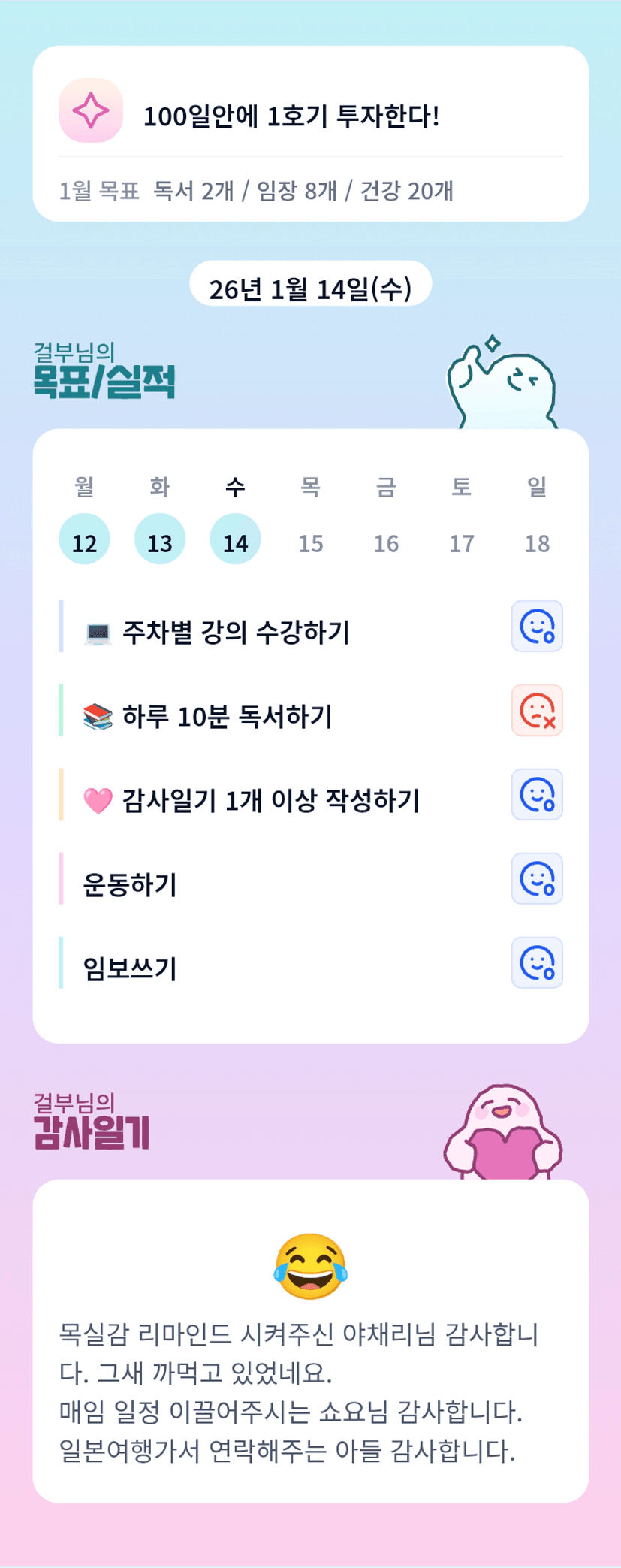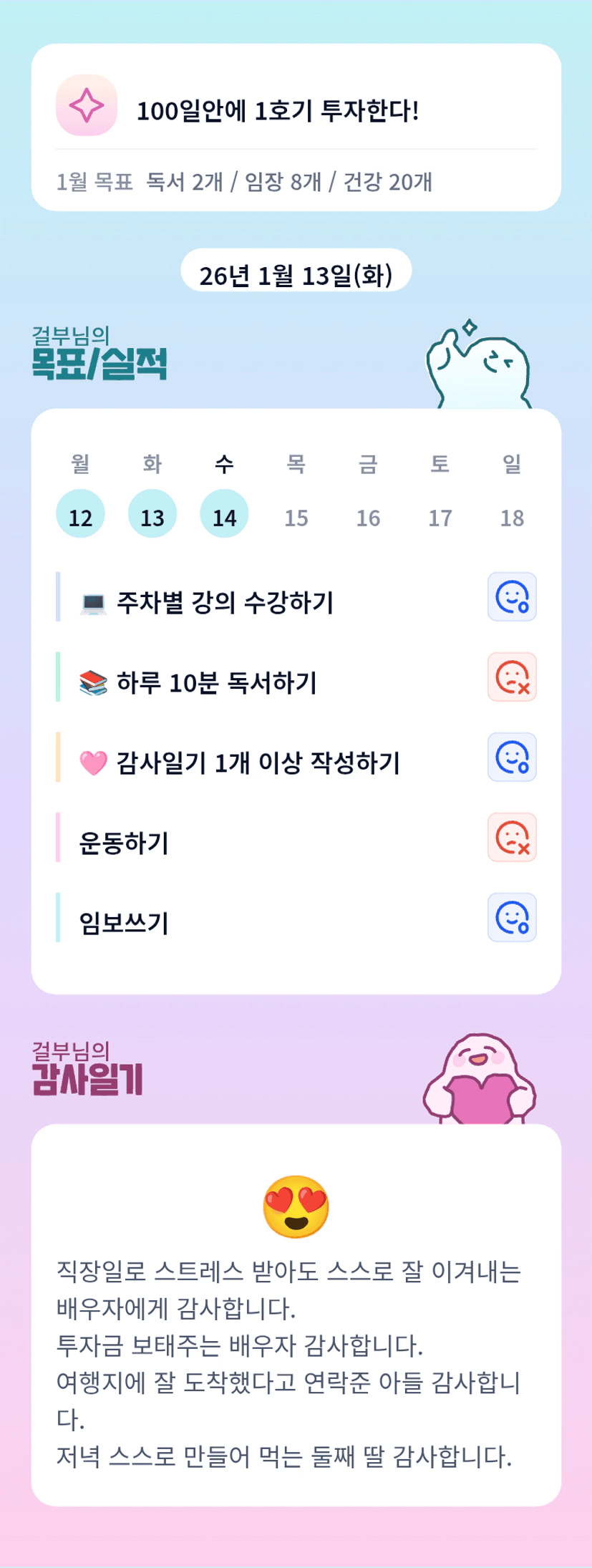 걸부님 무리하시면 안 돼요ㅠㅠ 휴식 꼭 취해주시고 오늘도 화이팅입니다!!