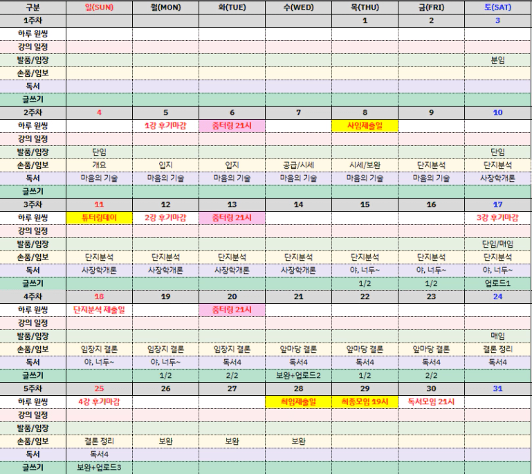 중간복기 시점에서 계획 다시 돌아보며,