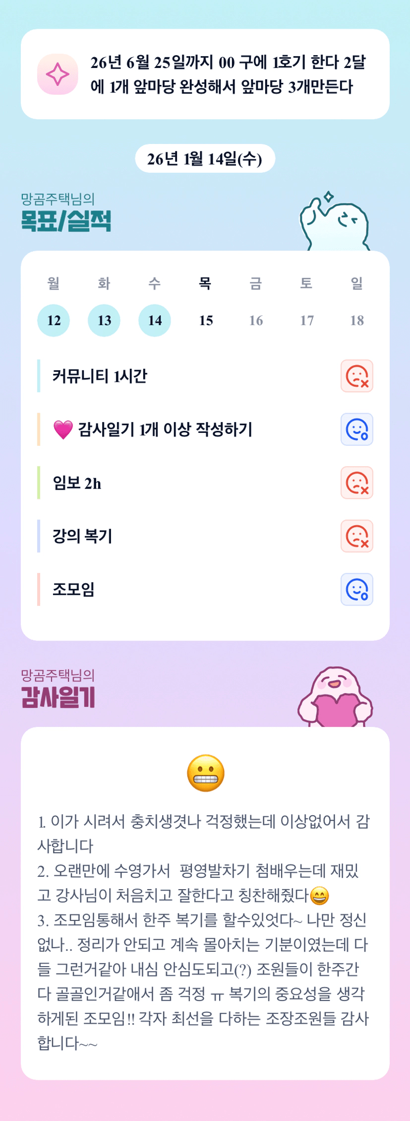 평형에서 칭찬받기 어려운데 망곰님~잘하시네요~~ 오늘은 저번보다 얼굴이 좋아보였어요. 체력 잘 챙기시고 주말에 만나요