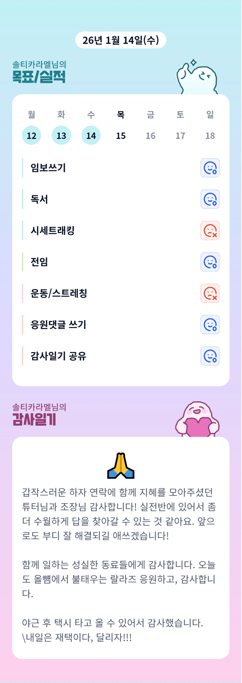 모든것은 대응의 영역 !!! 차분히 그래도 대응 잘하시는 솔티님 !! 하나씩 해보자구요 ! 마무리 잘하고 나눔글 까지 GOGO!!