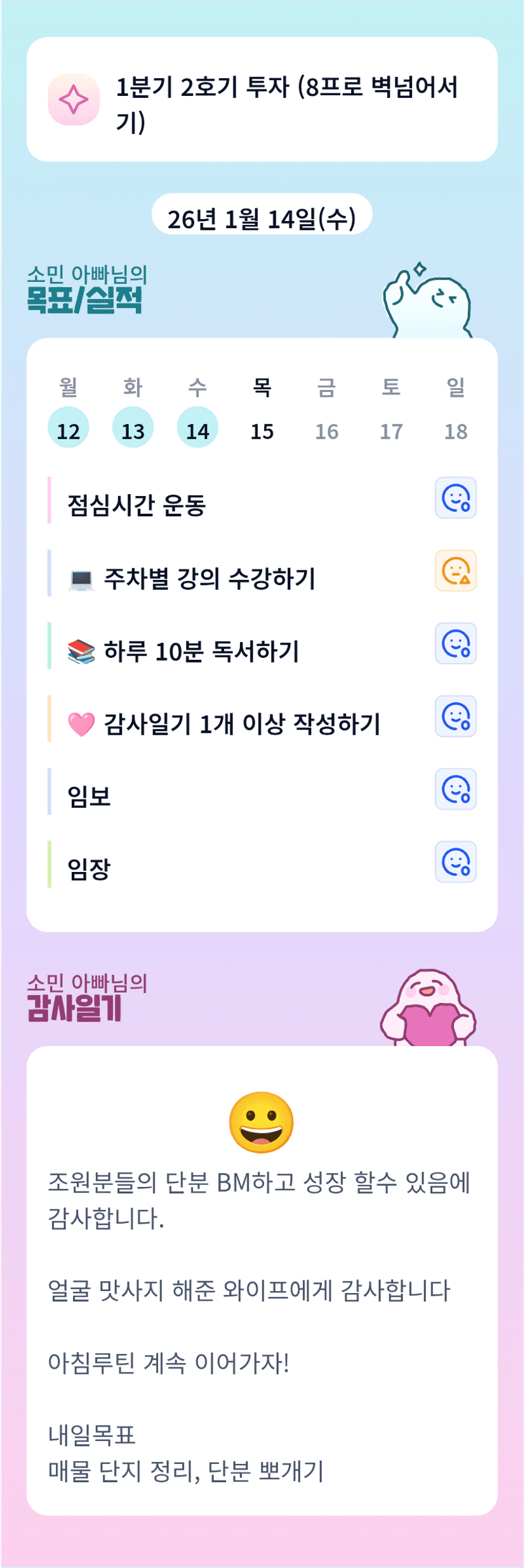 오늘은 2차 성장 갑시다아ㅎㅎ 아침루틴도 멋집니다! 오늘도 화이팅!!