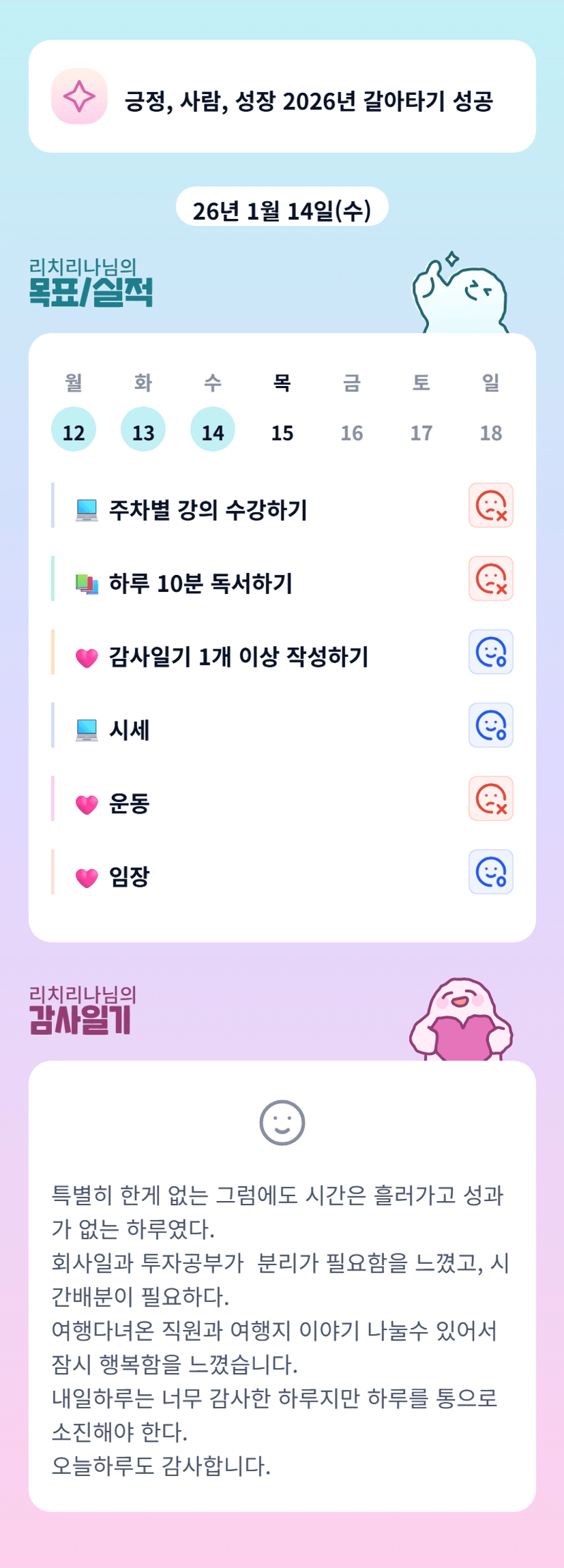어제의 저도 뭔가 성과가 없는하루인거 같아 공감되는 감일이네용,,ㅜㅜ 힘내시고 오늘 달려봐요 리나님!!! 화이팅!!!