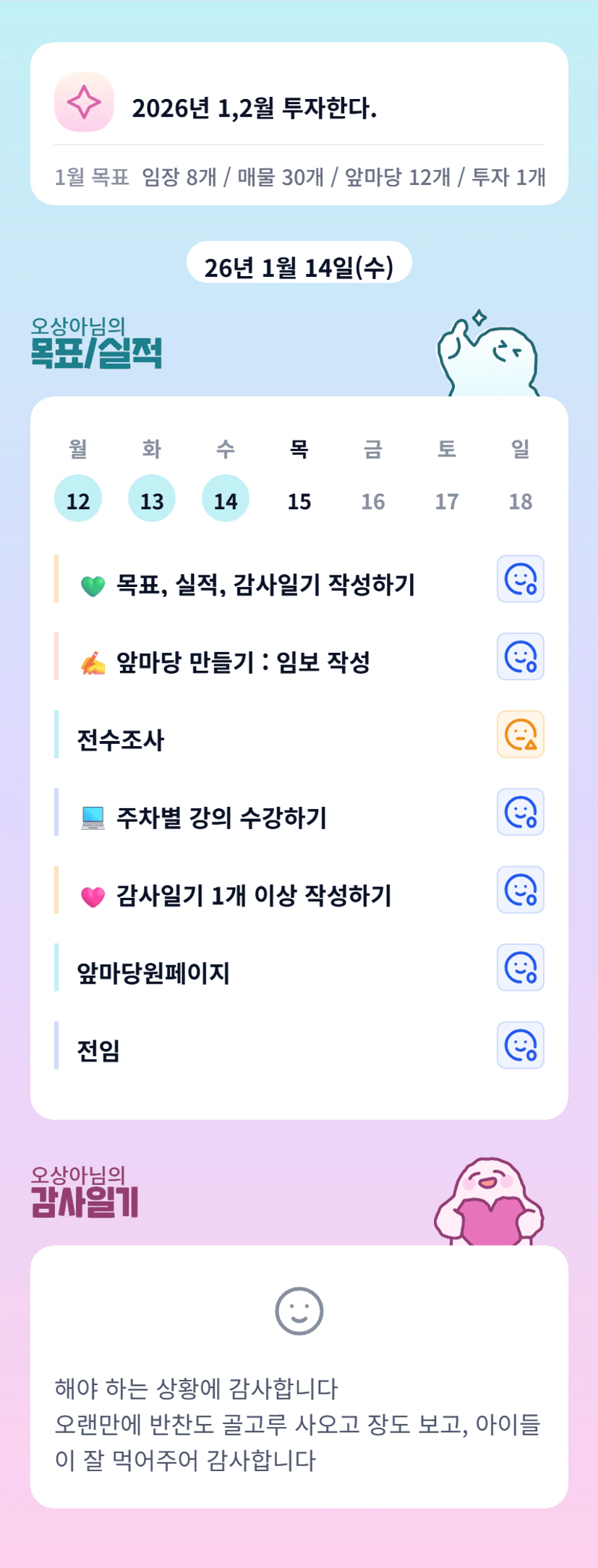 상아님~ 아이들 보며 루틴도 지키시며, 단지분석까지! 너무 멋지세요😆 오늘 수고 많으셨어요. 내일도 우리 화이팅해요💕