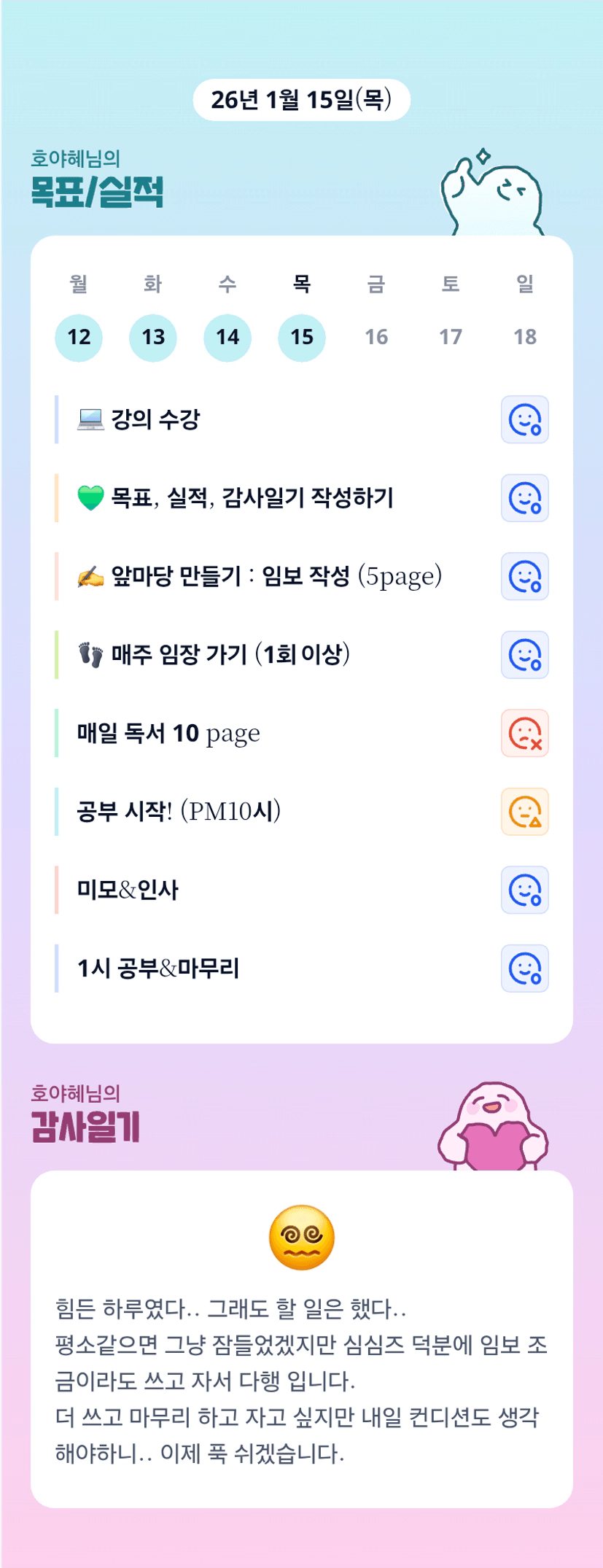 오늘 호부지 진짜 대단하셨어요 어떻게 회식하고 임보를... 고생 진짜 많으셨어요!!