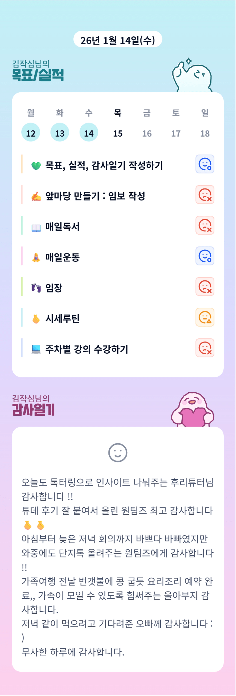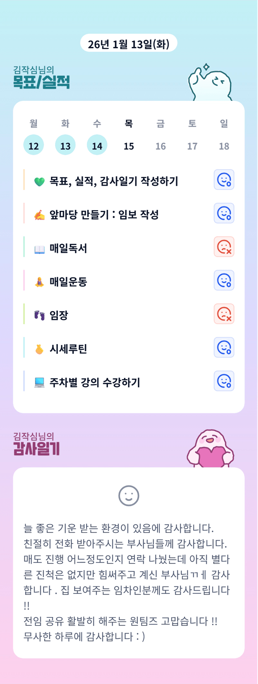 조장님 오늘도 수고하셨습니다 👍✨️ 여행 잘 다녀오세요오!😊🩷