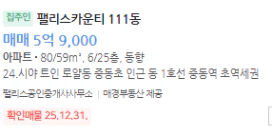 팰리스카운티 단지에 저층 제외 최저가 매물을 선택하여(세낀 매물x)