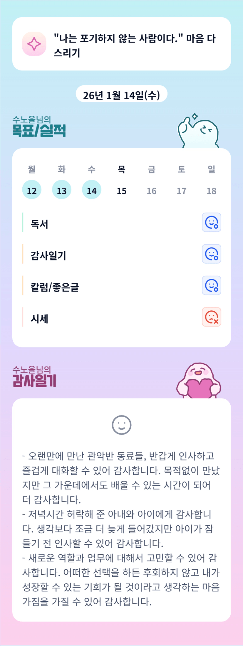 모임이 있어도 루틴은 놓치지 않으시는👍👍 오늘도 좋은 하루 보내시기 바라욤😄😄