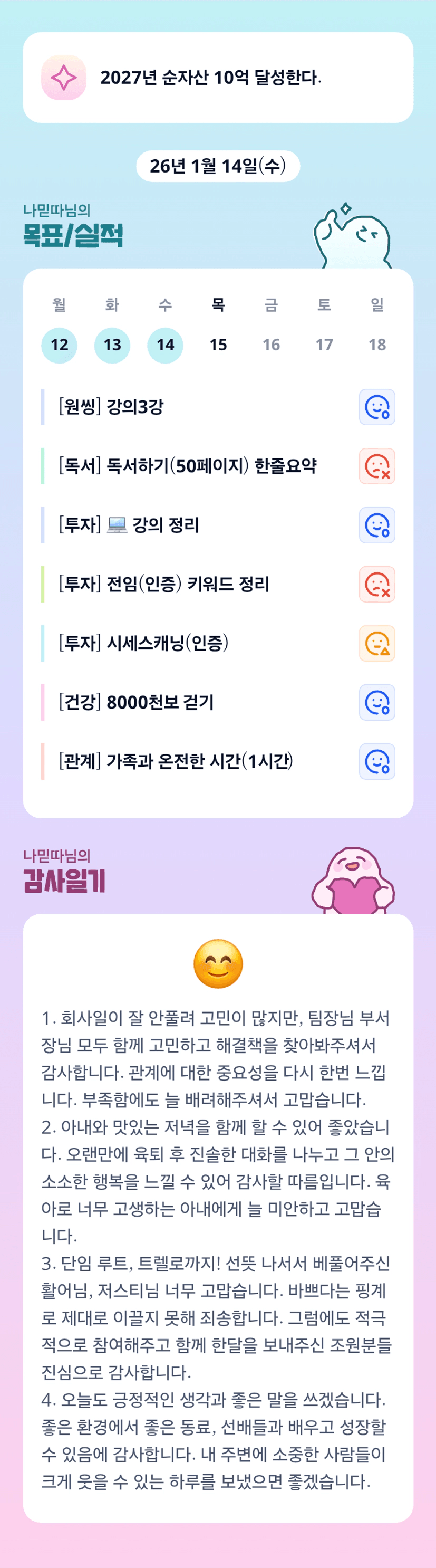 사람들에 대한 감사함이 가득이시네요! 오늘도 홧팅입니다!