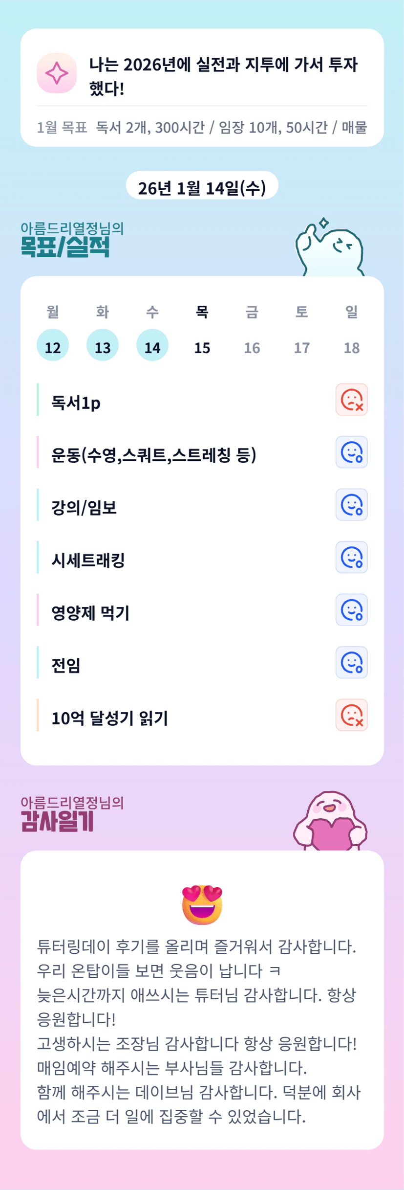 그러게요... 어제 후기이벤트 즐거웠어요.. 벌써 목요일이네요 😭 오늘도 화이팅..!!