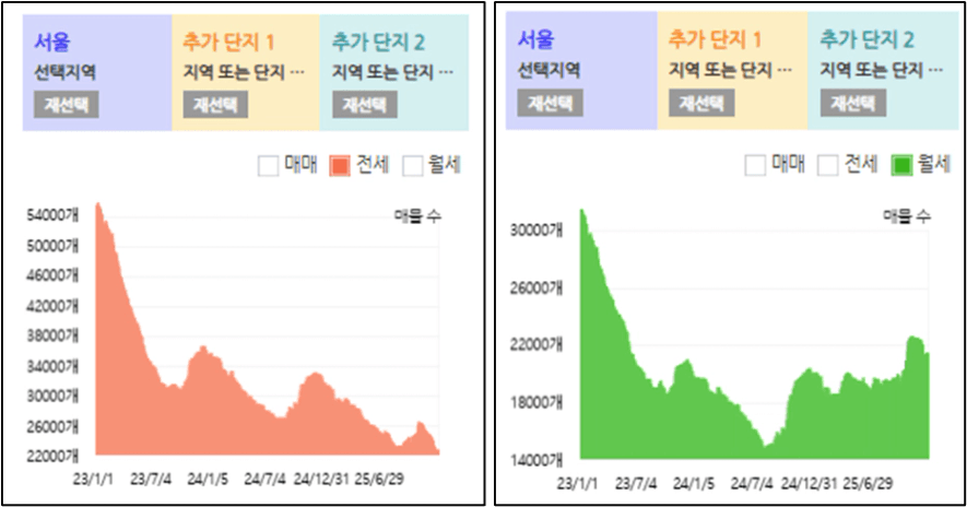 다음은 서울 전·월세 물량입니다.