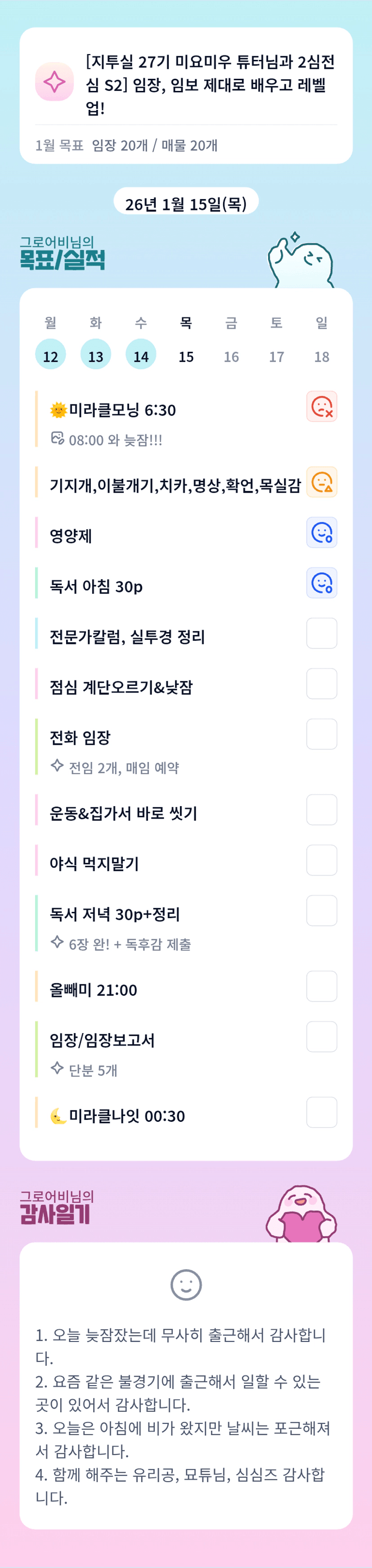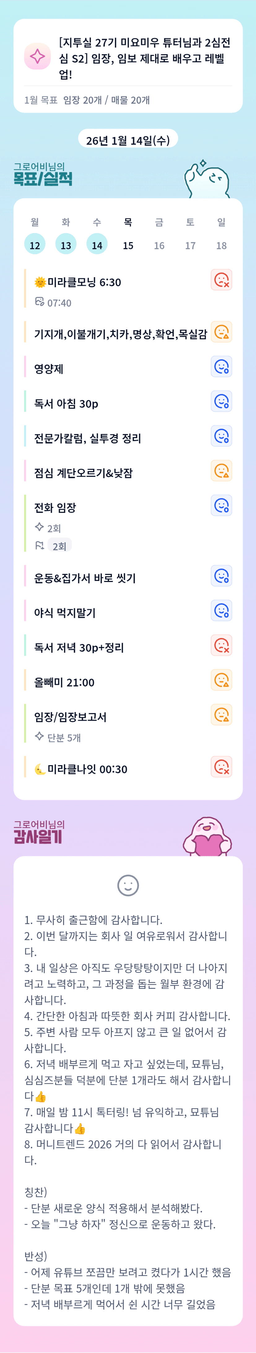 아니 ㅎㅎ 어비님 점점 늘어나는 루틴들 ㅋㅋㅋ 넘나 잘하고 계십니다!! 어비님 함께 해주셔서 감사해요 ^^