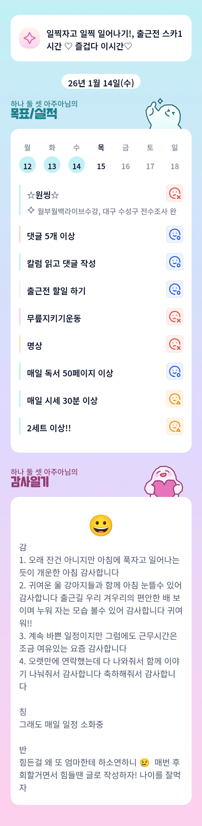 ㅋㅋㅋㅋㅋㅋㅋ 개운한 아침!!!! 꾸준히 해나가는 주아님 최고!!!!