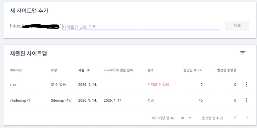 서치콘솔에서 /rss 상태가 가져올수 없음에서 변경이 안됨 (안될시 하라는 방법대로 해보았지만 시간이 지나도 변경이 안됨)