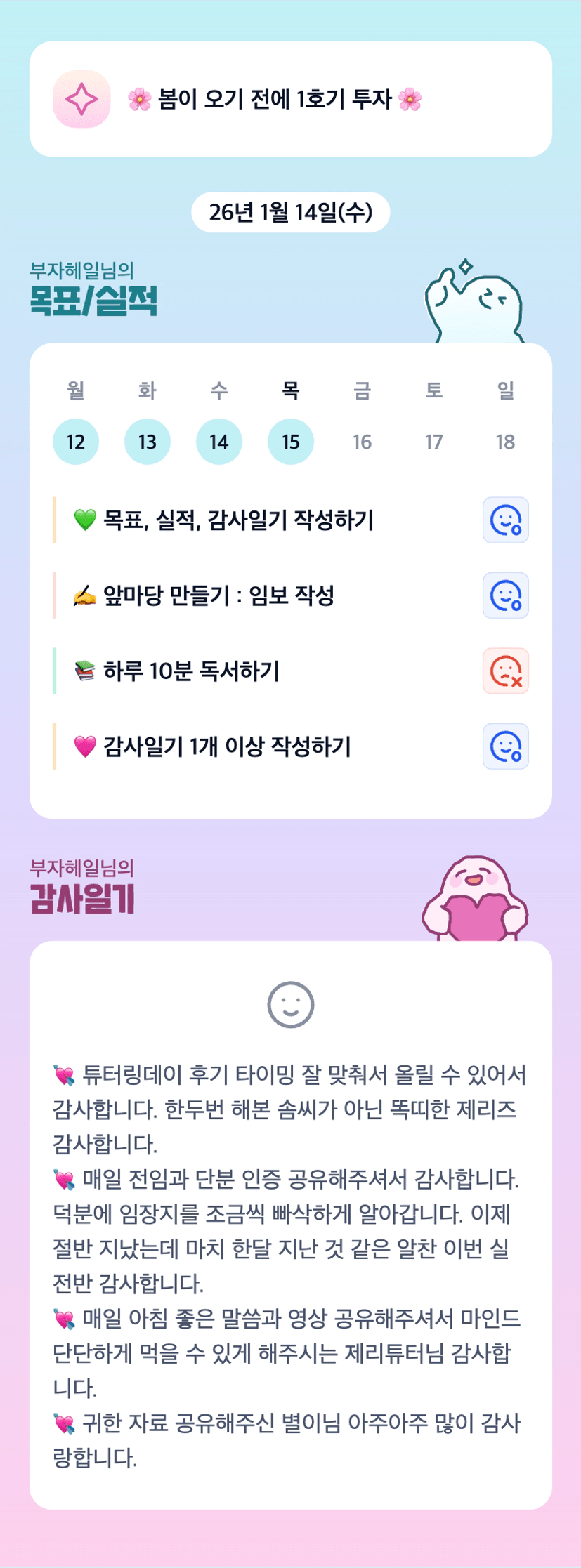 절반 지났는데 한달 지난것 같은... 완전 공감해요~~ 전임공유 많이 해주셔서 더 그런것 같아요 헤일님 오늘도 화이팅입니다 ~^^