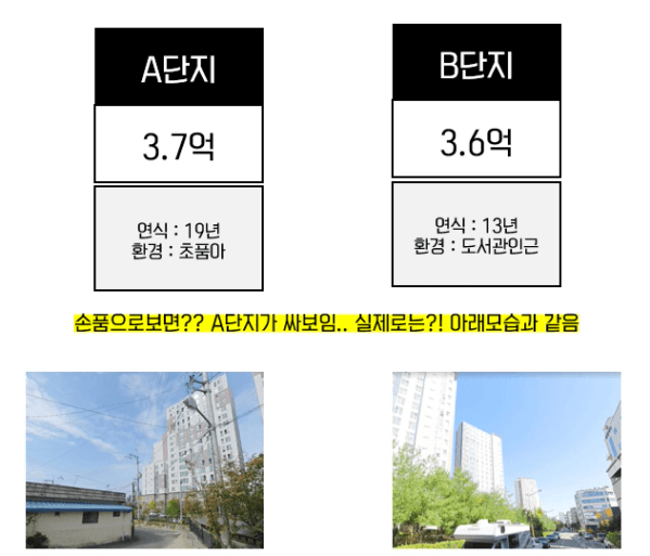 하지만 내 눈으로 직접 현장의 가치를 확인하고 "A단지보다 B단지가 확실히 낫네?"라는 비교 기준이 서게 되면,