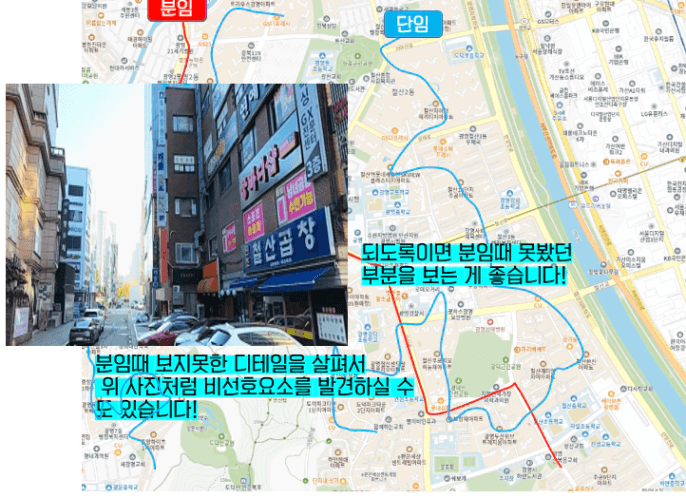 디테일의 완성: 분임 때 큰 도로 위주로 다녔다면,
