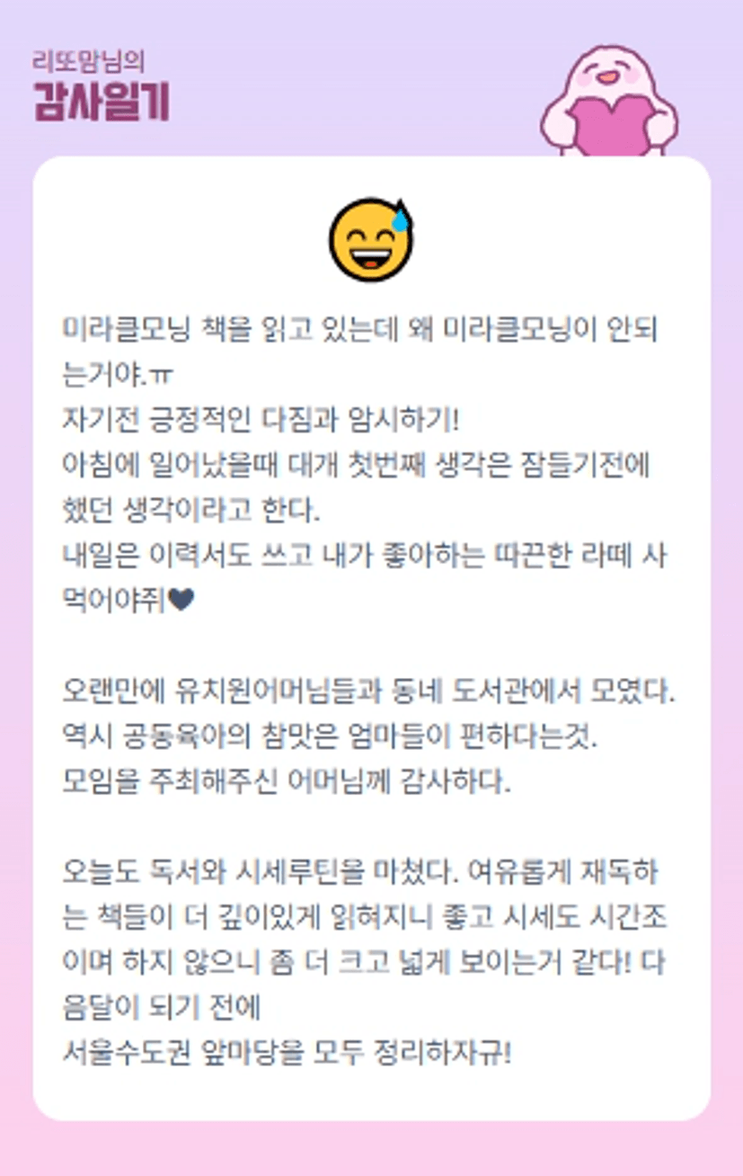미라클모닝 안 하면 어때유 할 일 다 하고 있는데 이력서 내고 마시는 라떼 넘 맛나겠당!!!