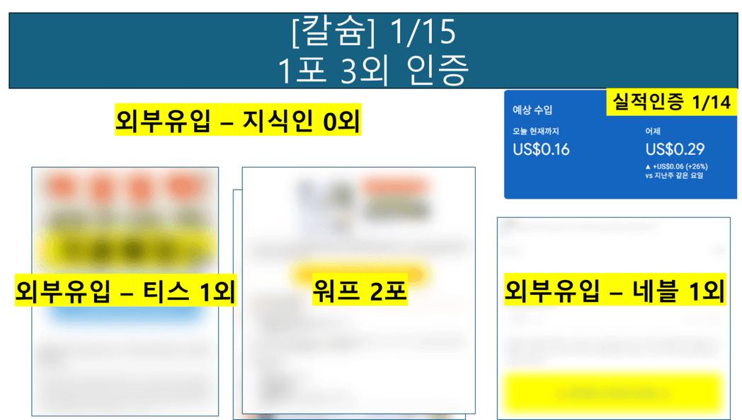 1/15 수익 인증과 1/16 오늘의 유입 분석