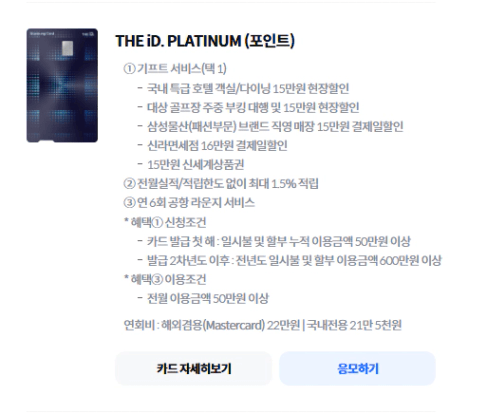 삼성 THE ID. PLATINUM(포인트) 카드를 발급해주시면 됩니다.