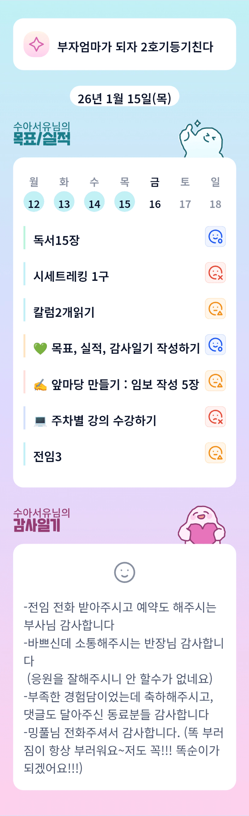 사임도 하루 먼저 제출하시고, 나눔글까지 쓰시는 똑순이 그이상인 아님 💚