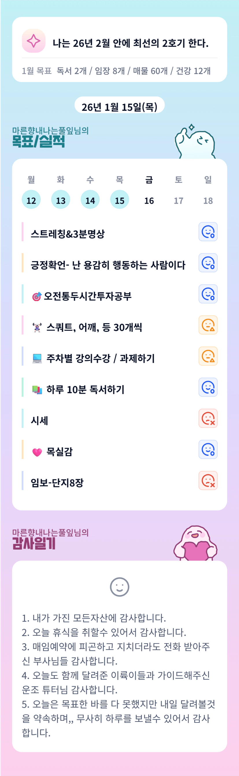 오늘 저도 목표 못채웠는데~~ 내일 같이 잘 해봐요 풀잎님