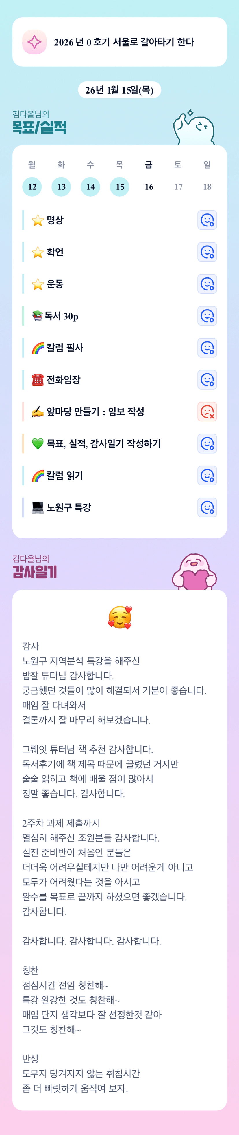 오 저도 노원구 특강 결제했는데 ㅎㅎ 이제 한강들었어요 ~ 다올님 독서도 강의도 다 잘하는 진짜 만능캐다!