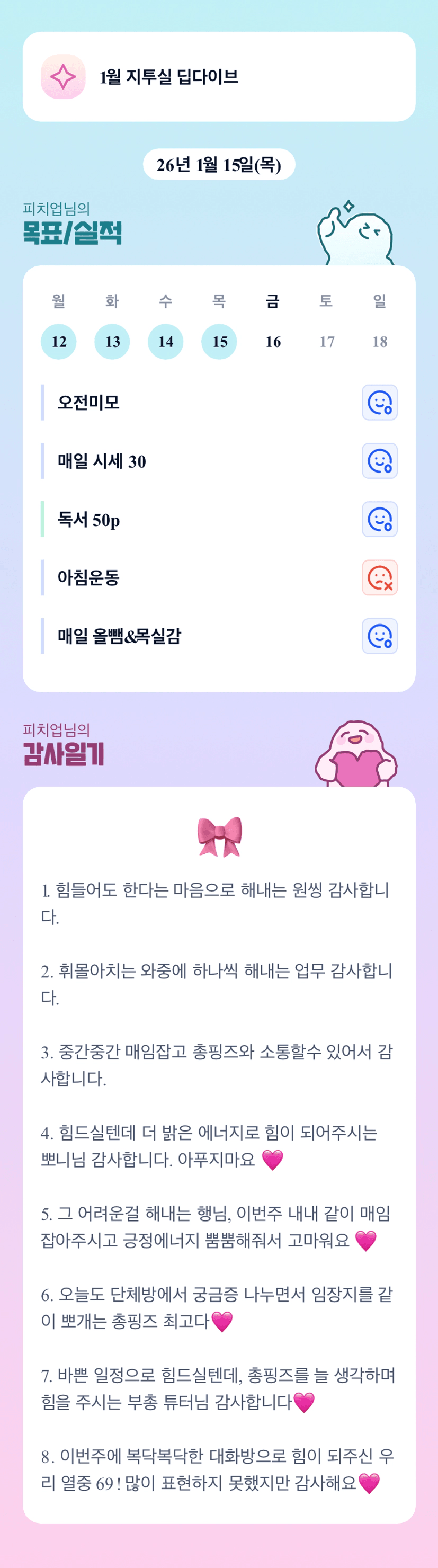 피치님, 고생 많으셨어요.^^ 오늘도 화이팅!!!