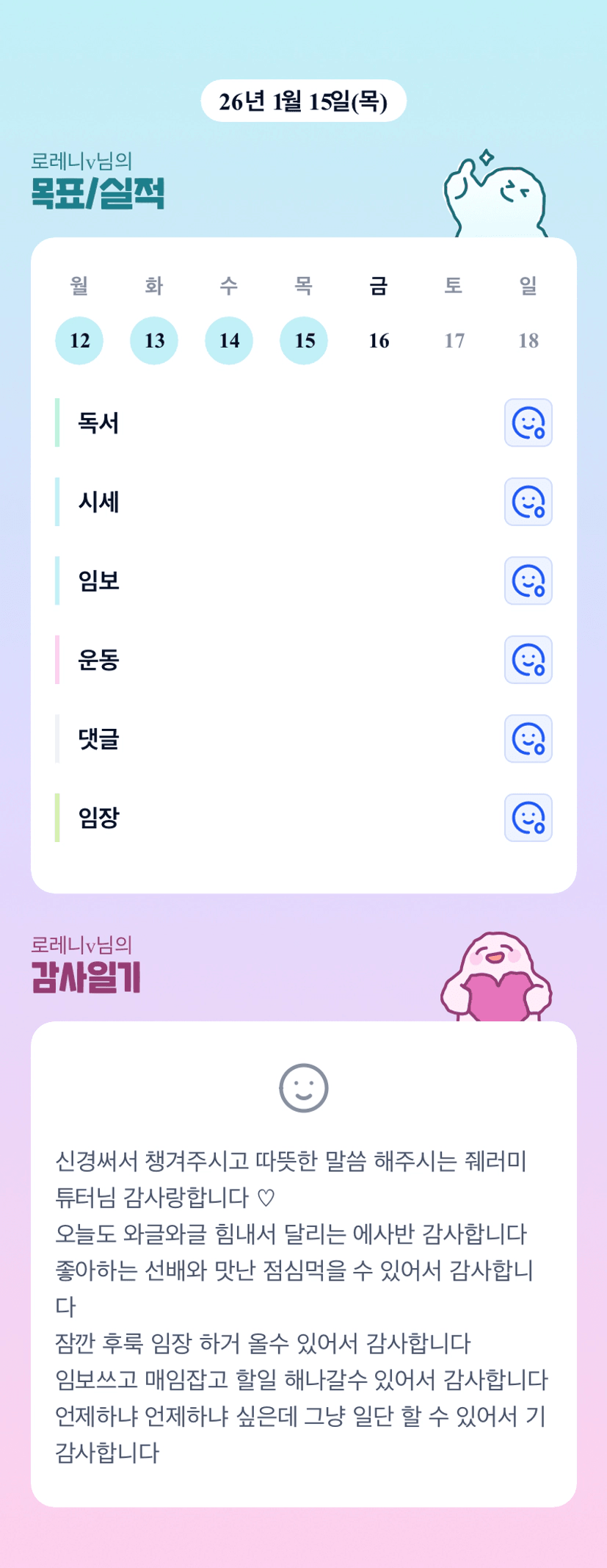 잘해내고 계신 레니님!! 오늘도 빠이팅입니다!! :)