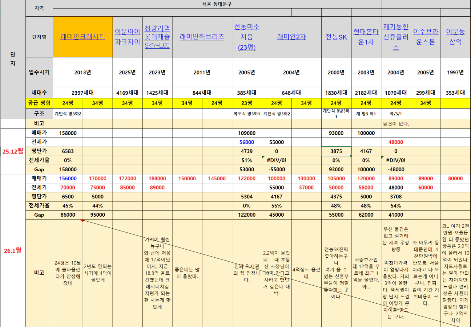 동대문구는 다른 지역을 임장한 뒤 다시 시세 트래킹을 위해 단지들을 살펴보니, 생활권마다 각기 다른 장점이 많은 곳임을 알 수 있었습니다.